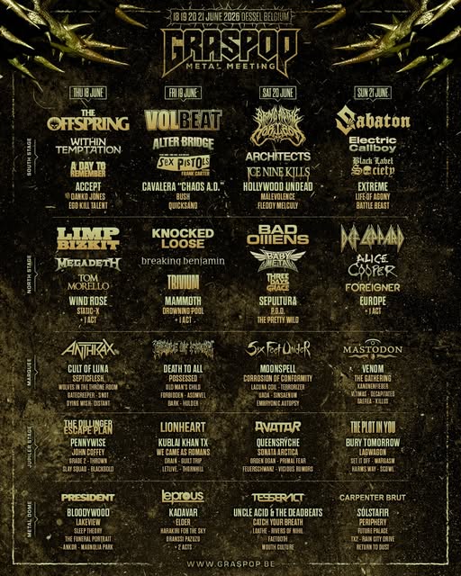 Knocked Loose heeft een kersverse single vrijgegeven, getiteld Hive Mind. Bijgaand vind je de bijbehorende videoclip. De Amerikaanse metalcore-formatie krijgt op dit nummer assistentie van hun bekende landgenoot Denzel Curry. We verwachten echter niet dat de rapper meekomt naar het optreden van Knocked Loose op de Graspop Metal Meeting. De groep neemt daar op vrijdag 19 juni de plek over van Twisted Sister als hoofdact van het tweede hoofdpodium. Zoals we eerder berichtten, hebben de hardrockers de geplande reünietournee afgeblazen met het oog op de lichamelijke gesteldheid van zanger Dee Snider. Knocked Loose is komende zomer in Europa voor een aantal support-optredens bij buitenlandse shows van Metallica en komt tussendoor even voor chaos zorgen op het festivalterrein te Dessel. Als je even verder leest, vind je de aangepaste festivalposter van Graspop met het complete programma (minus een paar nog bekend te maken acts).