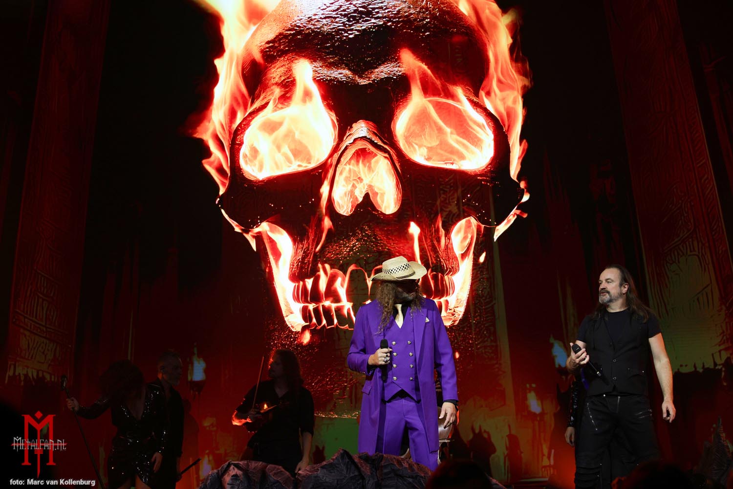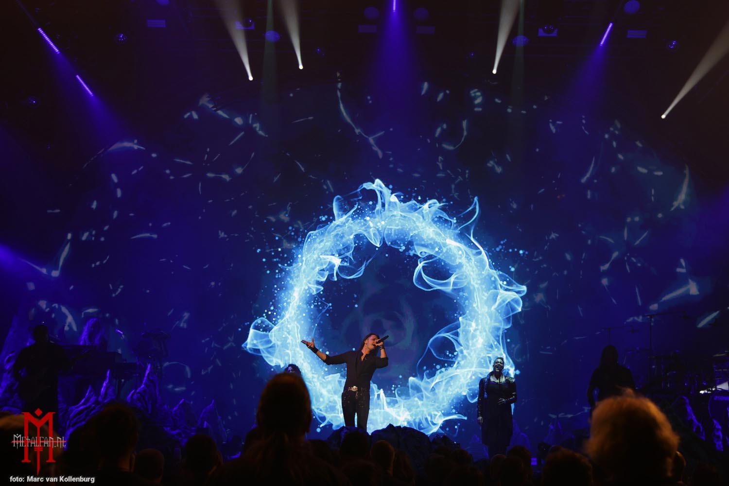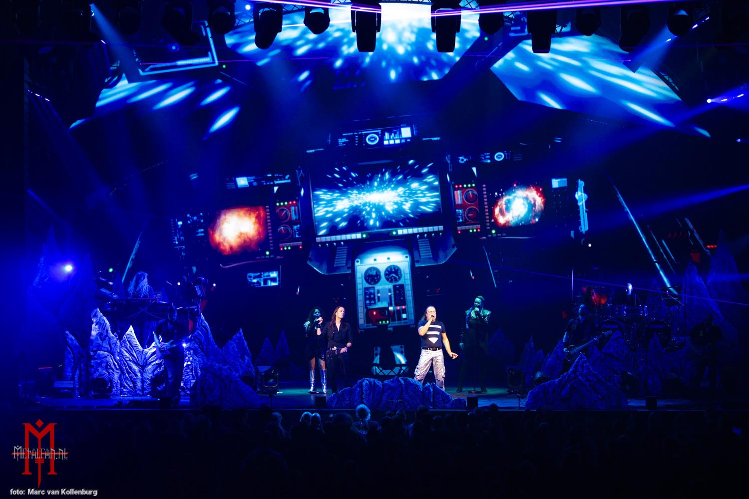 Een Egyptische achtergrond verraadt daarna al dat publieksfavoriet Valley Of The Queens gaat komen. Anneke van Giersbergen, Heather Findlay en Maggy Luyten betreden het podium, waarbij Anneke en Heather de coupletten zingen en Maggy de ondersteunende vocalen voor haar rekening neemt. En juist in dit prachtige nummer zit een van de weinige minpuntjes van de avond: Maggy's stem past er minder goed bij. Ik vermoed dat het gedaan is om variatie in stemmen te hebben ten opzichte van de vorige keer toen Marcela Bovio die rol had. Ondanks dat blijft het een prachtig nummer en wordt het volop meegezongen. Het opzwepende Day Sixteen: Loser blijft een genot en eindelijk komt toetsenist Joost van den Broek in de spotlights te staan. Het zware The Castle Hall volgt, waarin Robert Soeterboek dan eindelijk zijn opwachting maakt. Voor Amazing Flight wordt een tafel en stoel neergezet zodat hippie Arjen even lekker kan zitten. Hij heeft stiekem één tekstregel veranderd naar "amazing flight through time" om de titel van de shows er in te verwerken. De tweede set sluit af met Everybody Dies waarbij vele van de vocalisten weer het podium opkomen.